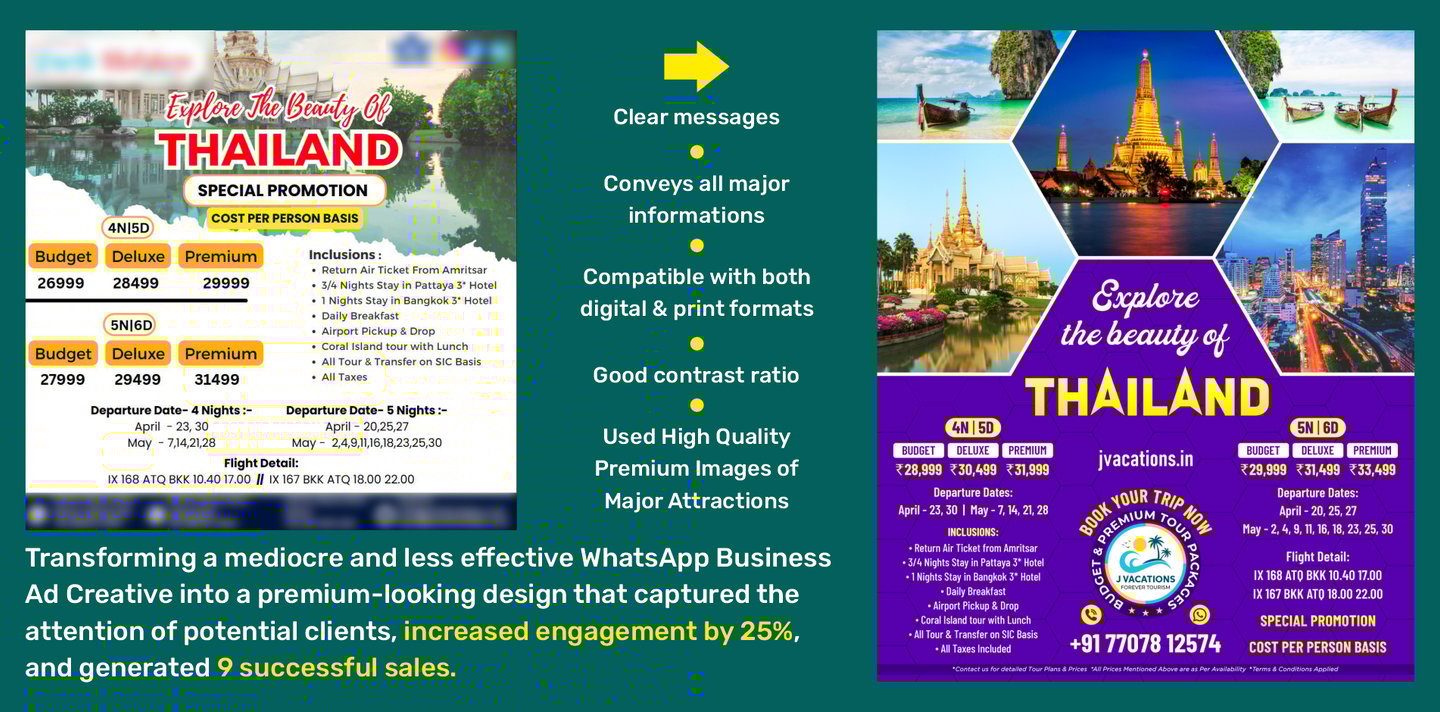 "Since hiring Kaushik to create my tourism agency's creative designs and social media promotional posts, client queries have increased significantly. I am very satisfied with his work."